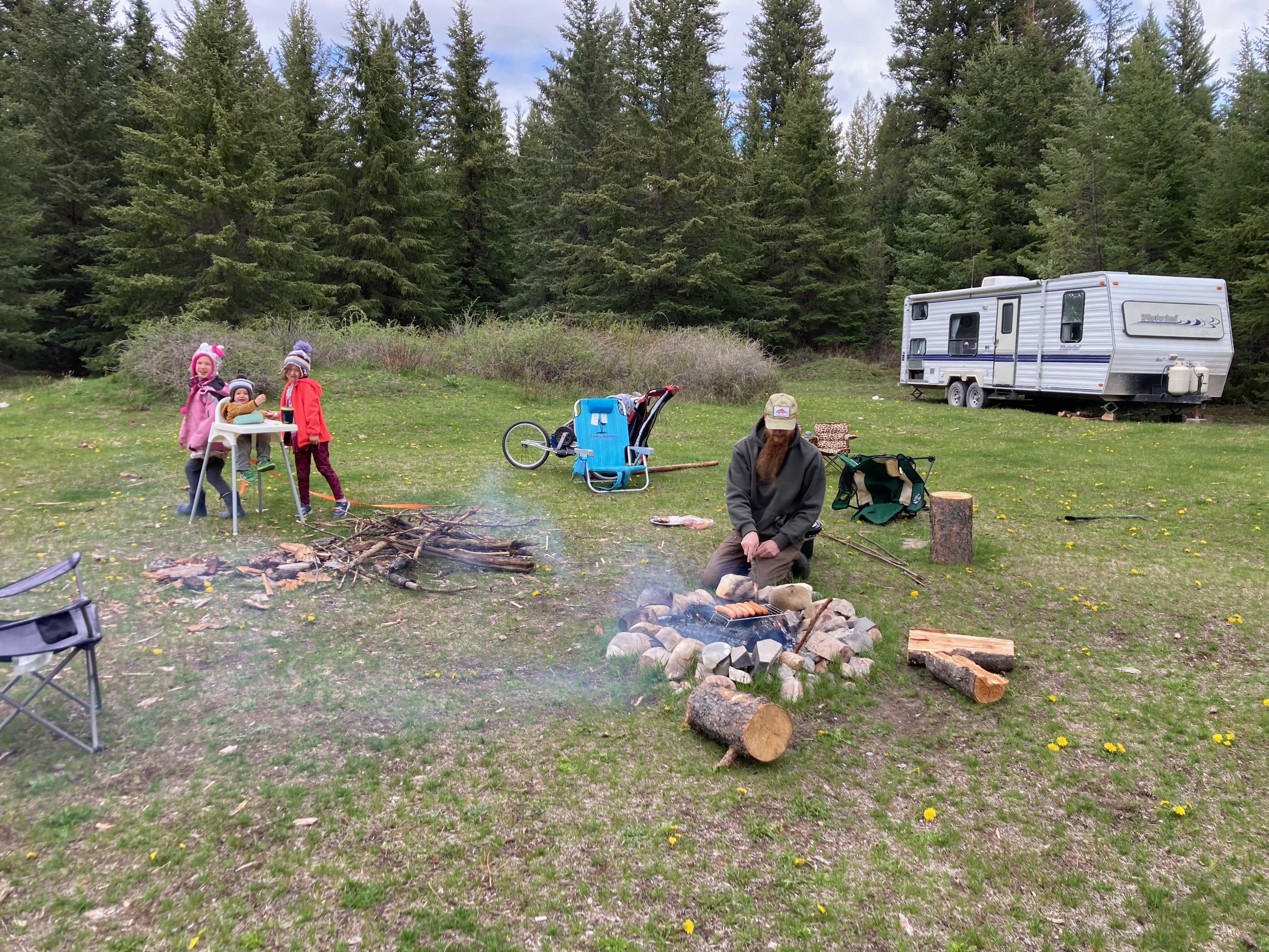 Kochen auf dem Feuer irgendwo auf einer schönen Waldlichtung im Nirgendwo