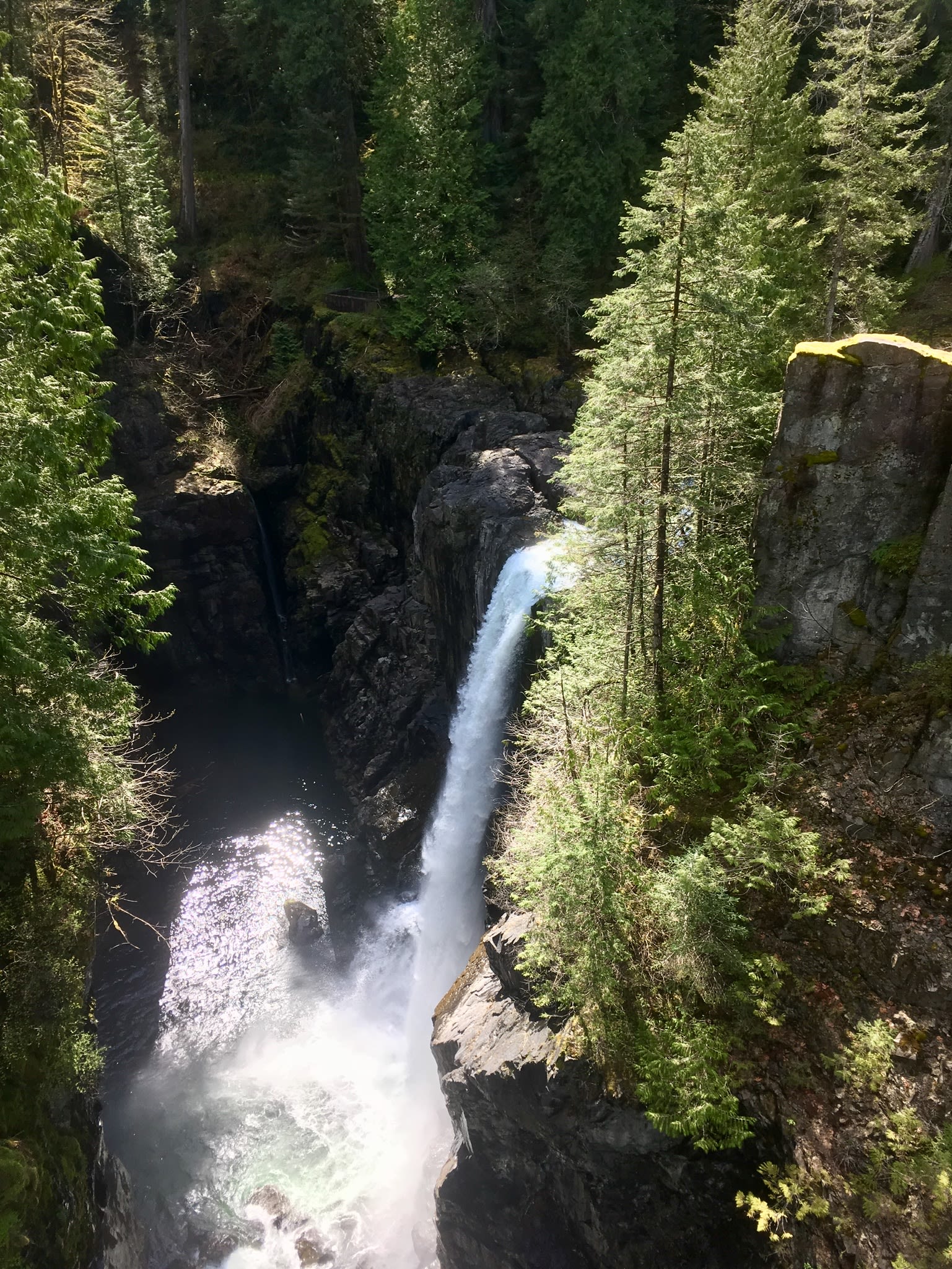 Als dann alle wieder wach waren begaben wir uns auf den kurzen Trail zu den Elk Falls. Nebst dem eindrücklichen Wasserfall bereichternten eine tolle Hängebrücke und viele Treppen den Spaziergang.
